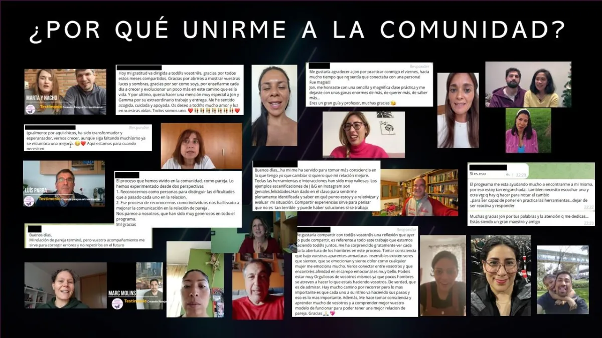 Experimenta los cambios positivos en tu relación mientras aplicas lo aprendido. Disfruta de una comunidad que te apoya y celebra tus logros. Vive la satisfacción de tener una relación más armoniosa y llena de amor, mientras sigues recibiendo el apoyo continuo de Jon.